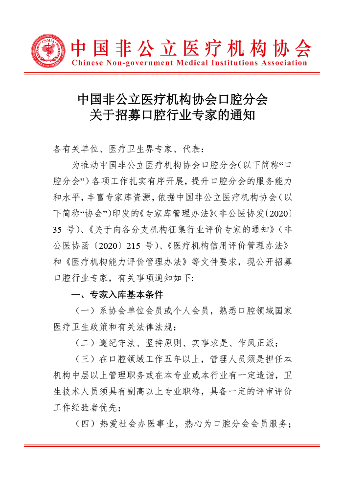 - 关于《口腔门诊部/诊所能力评价标准》团体标准的立项公告